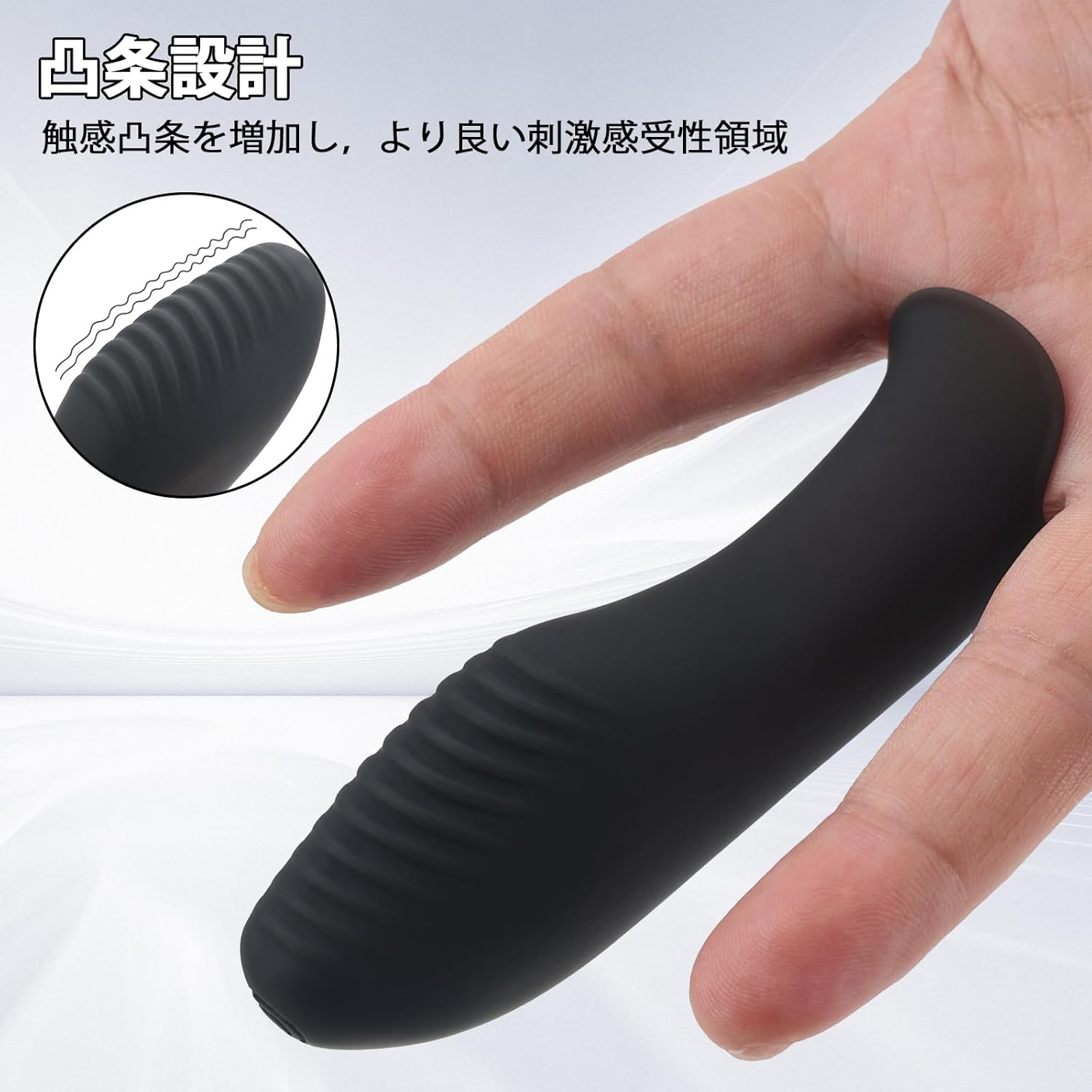 本体は軽量・コンパクト。あくまで補助として機能するサイズ感なので、主役となる要素を邪魔しません。巨根との併用を想定する場合、存在感が強すぎる補助具はかえって扱いづらくなりますが、この指サックは“足し算”に徹しています。