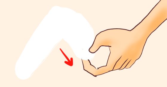 ③ もう一方の手で、根元から先端方向へ向かって、ゆっくりと伸ばすように動かします。